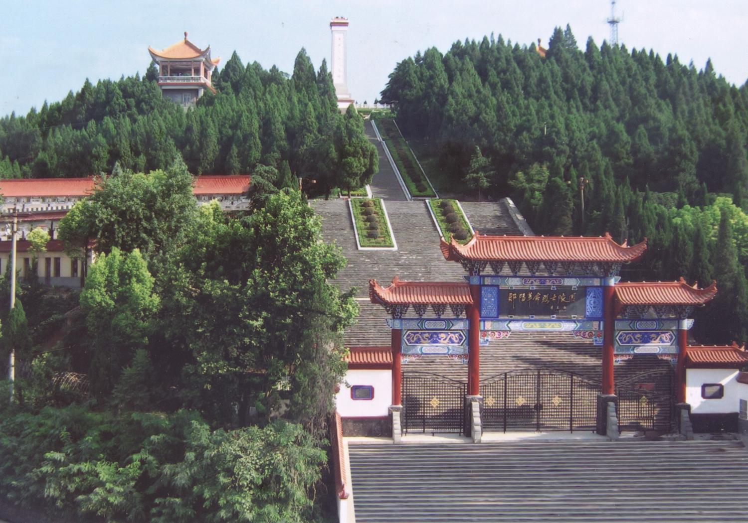 鄖縣地處鄂西北,地跨漢水南北,地勢(shì)顯要,是兵家必爭(zhēng)之地。新民主主義革命時(shí)期,在黨的領(lǐng)導(dǎo)下,鄖陽相繼有4萬多人參軍參戰(zhàn),2000多人壯烈犧牲。鄖陽革命烈士陵園始建于1950年,由原中共鄖縣縣委、鄖陽專員公署、鄖陽軍分區(qū)為悼念解放鄖陽而犧牲的烈士所建造的。原址坐落于鄖縣老城滄浪山(又名虎山)。1951年7月1日落成,占地25畝,建筑面積10畝,東西長(zhǎng)400米,南北寬125米。主體建筑有三層磚木結(jié)構(gòu)的六角形主亭,層層豎有鐫刻褒揚(yáng)烈士之文和烈士英名的大理石石碑。南北輔亭各一,對(duì)稱豎立刻有烈士英名的石碑,主亭正前方有仿古精雕牌坊,牌坊書“鄖陽烈士陵園”六個(gè)大字,主亭前的映壁上仿書毛澤東題詞“生的偉大,死的光榮”,園內(nèi)綠蔭夾道,百花爭(zhēng)艷。主亭頂部塑身著綠軍裝、持槍遠(yuǎn)眺的人民解放軍戰(zhàn)士的全身塑像一尊。1978年,因丹江口水庫蓄水后,南碑地勢(shì)下陷。1979年,經(jīng)報(bào)請(qǐng)湖北省人民政府批準(zhǔn),將陵園遷建于新城正北部楊家?guī)X。新鄖陽革命烈士陵園依山而建,占地100多畝,現(xiàn)主體建筑有革命烈士紀(jì)念碑、紀(jì)念碑亭、楊獻(xiàn)珍紀(jì)念亭、革命史陳列館、影像館和東西仿古四角亭,附屬建筑物有覽鷹園、護(hù)陵墻等。其中紀(jì)念碑為鋼筋混凝土磚石結(jié)構(gòu),略呈正四棱臺(tái)型,碑身高24.8米,石碑,鐫刻著各個(gè)革命時(shí)期犧牲的1609位烈士英名,館內(nèi)還存放著中共鄖陽地委、鄖陽行署、鄖陽軍分區(qū)、鄖陽地直機(jī)關(guān)、中共鄖縣縣委、鄖縣人民政府和各界群眾團(tuán)體進(jìn)獻(xiàn)的匾額23塊。在仿古碑亭長(zhǎng)廊里,篆刻著二七大罷工領(lǐng)導(dǎo)之一的施洋烈士,鄖縣籍共產(chǎn)黨員、百色起義組織者、紅8軍政治部主任何世昌。陳列室29塊展板上詳記著丹江口、鄖縣、鄖西、房縣、竹山、竹溪等縣市革命斗爭(zhēng)史,是十堰市史料最完備、囊括面最廣的革命史館。