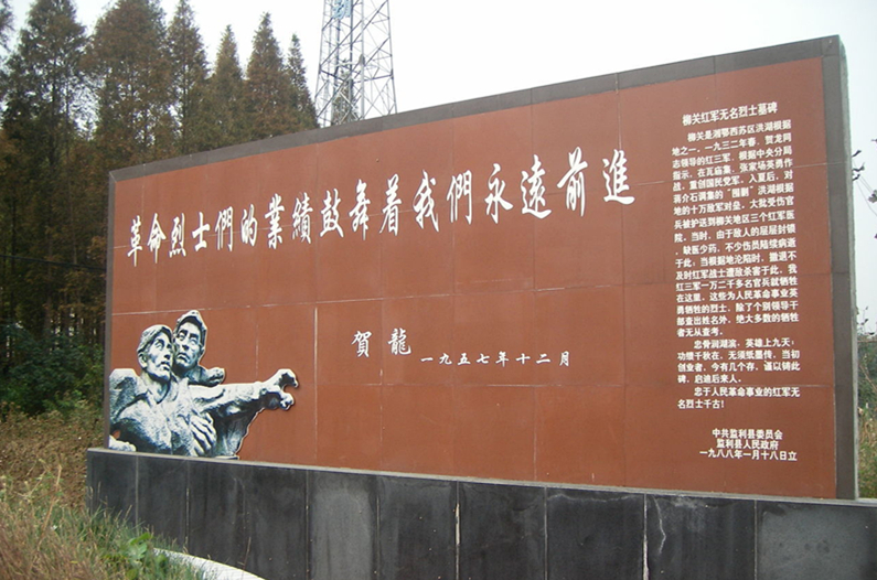 1932年夏,國民黨反動派結集10萬重兵對洪湖地區發動第四次“圍剿”,洪湖蘇區落入敵手。紅軍醫院、兵工廠、被服廠等全被焚毀,柳關街化為灰燼,柳關后方醫院3000多名傷病員來不及轉移慘遭殺害。這些犧牲的紅軍將士,被就地掩埋在內荊河兩岸。
